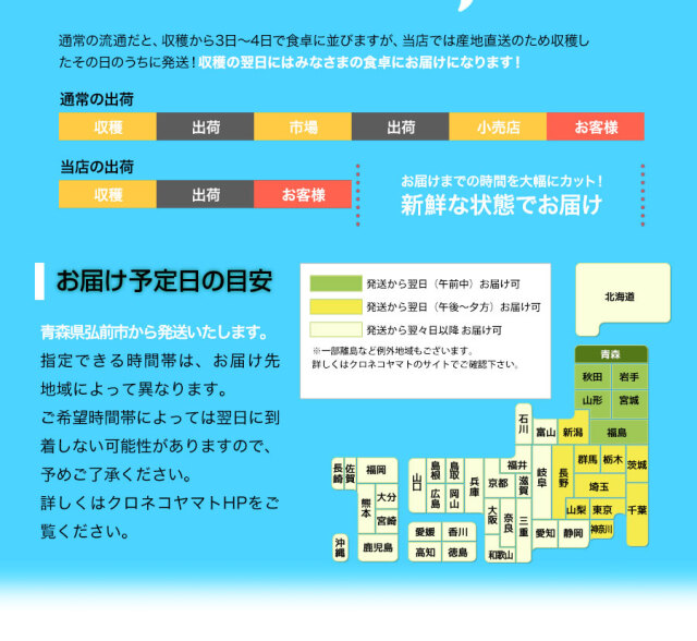 | 賞味期限 | 日が経つと鮮度・甘みが落ちていきますので、お早目にお召し上がりください。 |