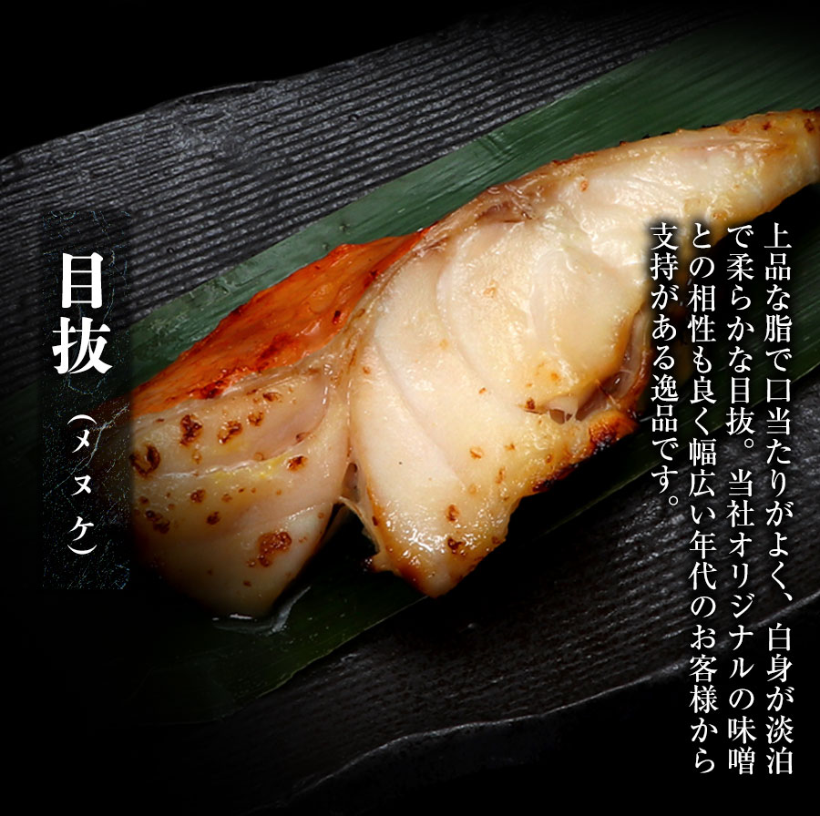 | 内容量 | 銀たら西京漬(アメリカ産)3切 目抜西京漬(アメリカ産)3切 とろさば西京漬(クック諸島産)2枚 |