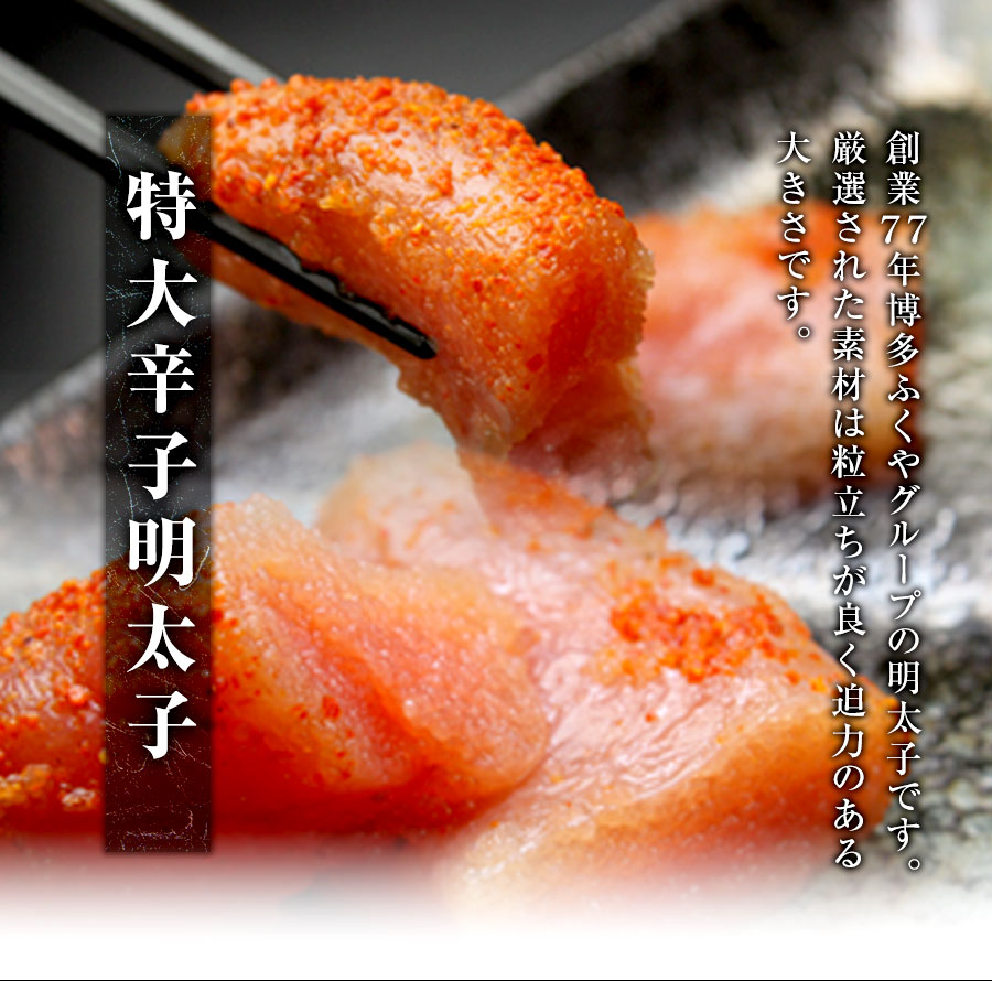 | 原材料 | すけとうだらの卵(ロシア、アメリカ産)、食塩、酵母エキス、調味料(アミノ酸)、酸化防止剤(V.C)、ナイアシン、発色剤(亜硝酸Na)、酸素、ソルビット、本みりん、調味料(アミノ酸)、唐辛子 |